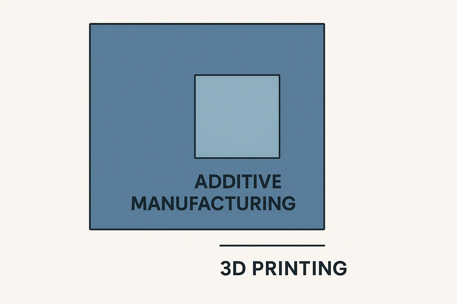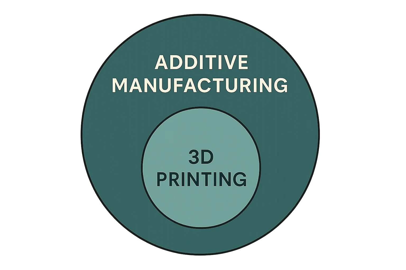 Ideo, cum aliquis refert ad 3D printing, sunt describere modum, quod inhaerens operatur additive vestibulum. Tamen, cum discussing additive vestibulum, una est circumdatio multo latius range provectus technologiae, materiae et applications extenditur longe quam communi publico more societatis "3D printing." Quod terminus 'Vestibulum additive "extollere industriae intent, praecisione et perficientur capabilities crucial pro discrimine applications, dum" 3D printing "saepe ornare magis generativus conceptum creandi tres dimensiva accumsan.