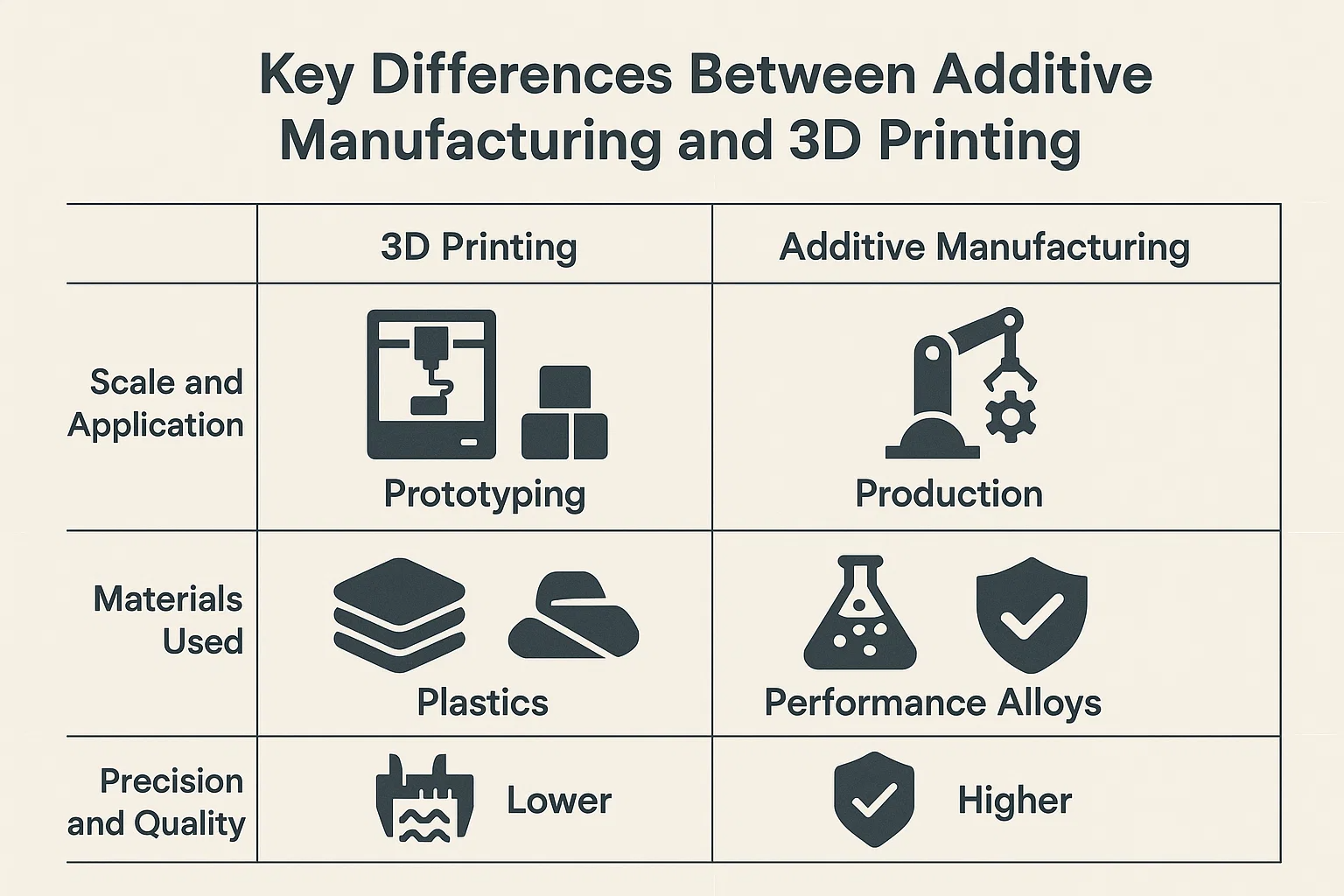 Dum 3D printing est forma additive vestibulum, intellectus illorum distinction est vitalis est appreciationis plenus scope et capabilities harum technologies. Differentias praesertim mentiri in scale, typical applications, materiae usus et praecisione et qualis expectata eorum outputs.