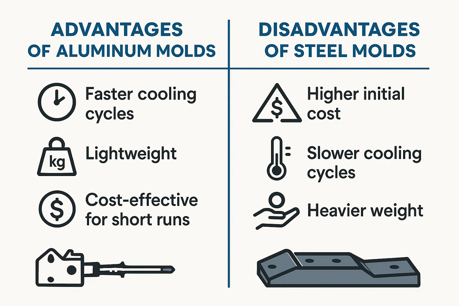 Hoc est ubi Aluminium Flats Fine luceat. Aluminium transferat calor ad quinquies velocius quam ferro. Hoc princeps scelerisque conductivity est fingunt refrigerari et significantly citius, quod dramatically reduces exolvuntur tempora et crescit productio celeritas. Ferro formae , In contrarium, retinent æstus diutius, ducens ad tardius refrigerationem et diutius altiore exolvuntur tempore.