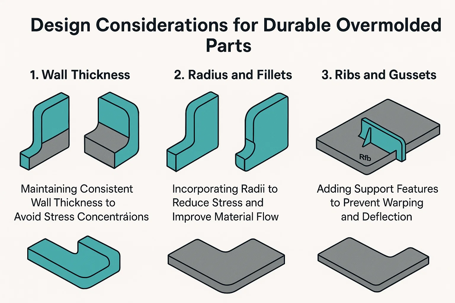 Praeveni Warpage: Magna, plana areas of overmolded materia sunt prone ut warping ut frigus. Si superpositum a subiecto, vinculum non necesse deficere. Costas Tenues sustineant muros addidit non-medicamine parte. Et proventus rigiditatem sine addendo significant massa vel requiring nimia muro crassitudine.