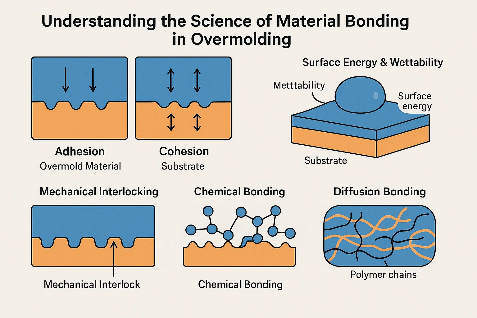 Achieving a permanens vinculum in overmolding non magicae; Est scientia radicatur in quam materiae inter se occurrunt ad microscopic campester. Ad vere dominus overmolding, opus est ad capere fundamental principia adhaesionem et cohaesion Et quomodo applicant ad interface inter substantiam et overmold materia.