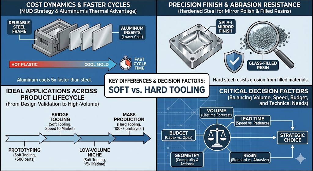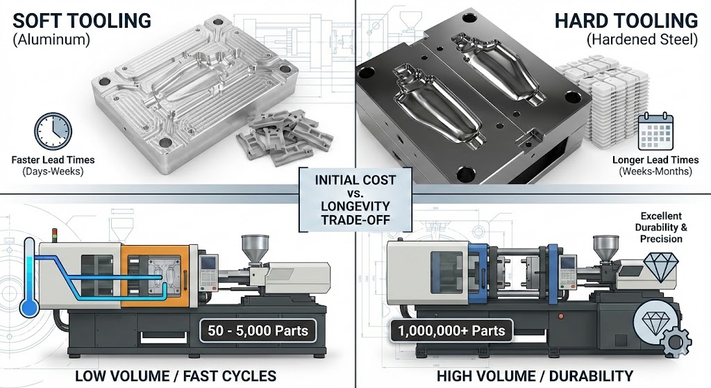 | Feature | mollis Tooling (Aluminum) | Difficile Tooling (Steel) |