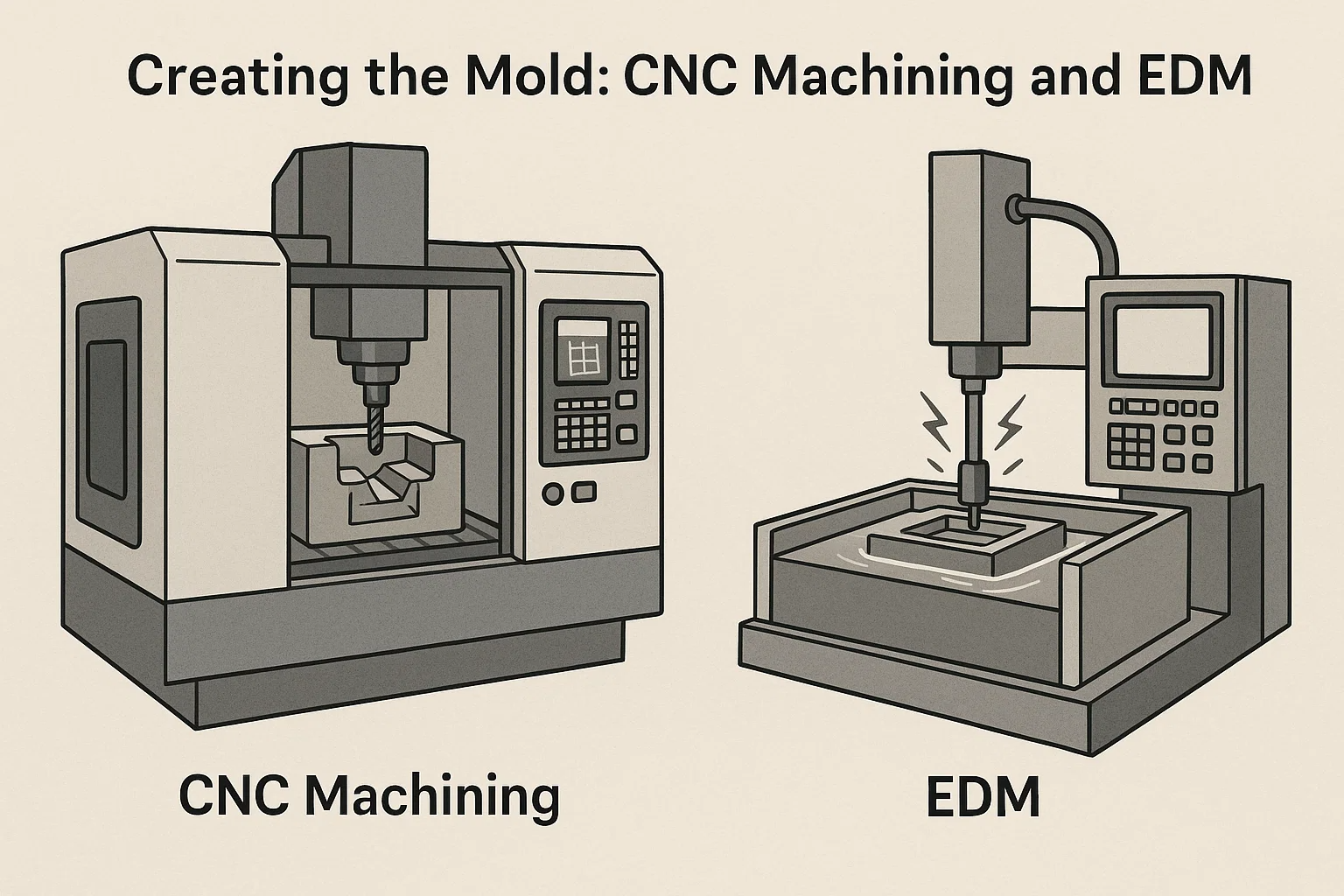 EDM , Etiam notum est quasi scintilla machining, est a non-conventional machining processus, quod utitur electrica obit (scintillas) ad ERICE materia. Dissimilis cnc milling, quod utitur corporalis secans instrumenta, EDM operatur per generating scintillas inter an electrode (ad instrumentum) et workpiece (ad fingunt materiam) in dielectric liquidum. Hoc processus est specimen pro creando intricatus details, acuti angulos, et altum, angustus features sine mechanica accentus in materia.