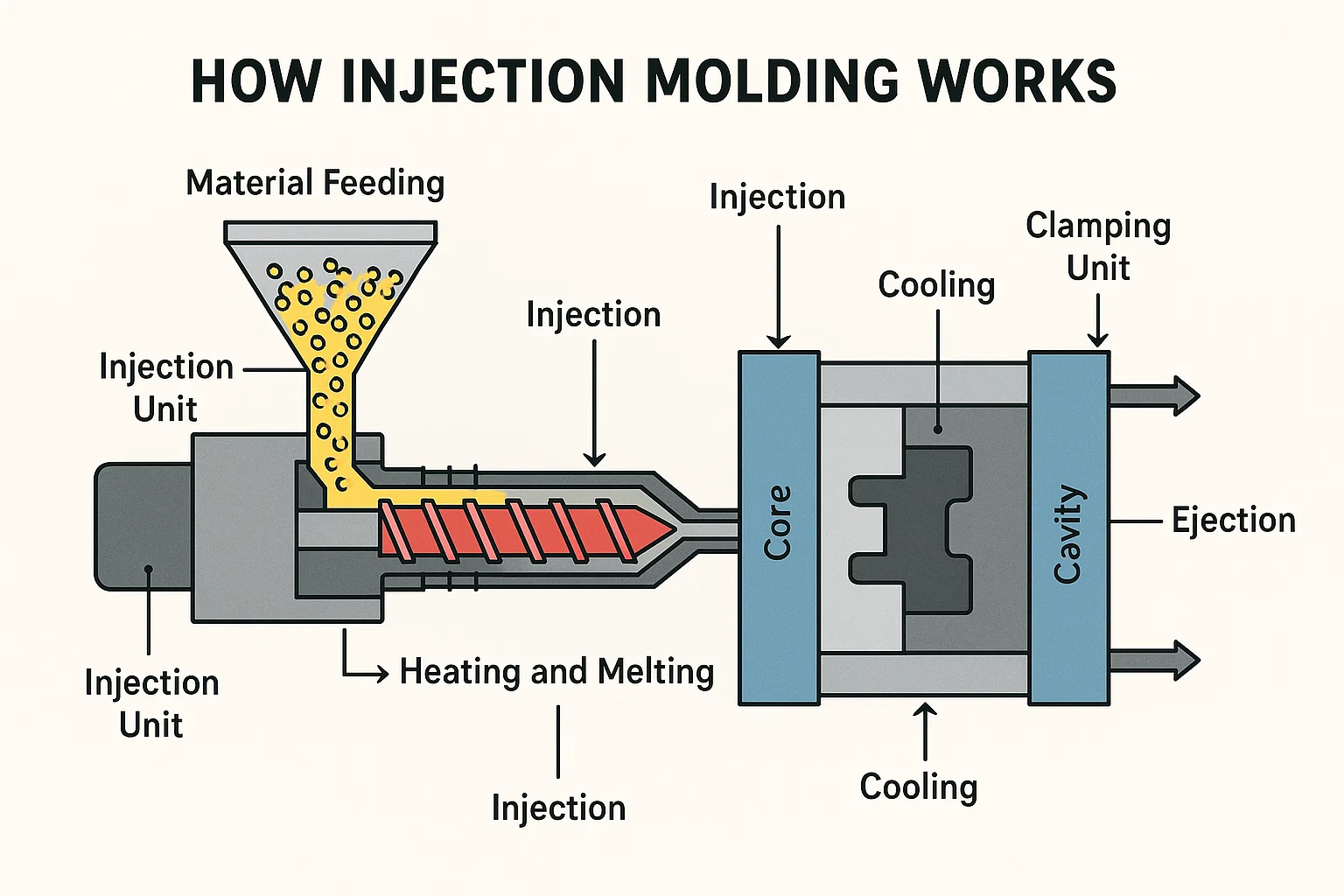 Meditati magno et automated processus transformat crudum plastic pellets in perfecte informibus pars in rem secunda. Quod suus 'per se quid accidit in iniectio CUMATIUM. Processus potest destructa in pluribus clavis;